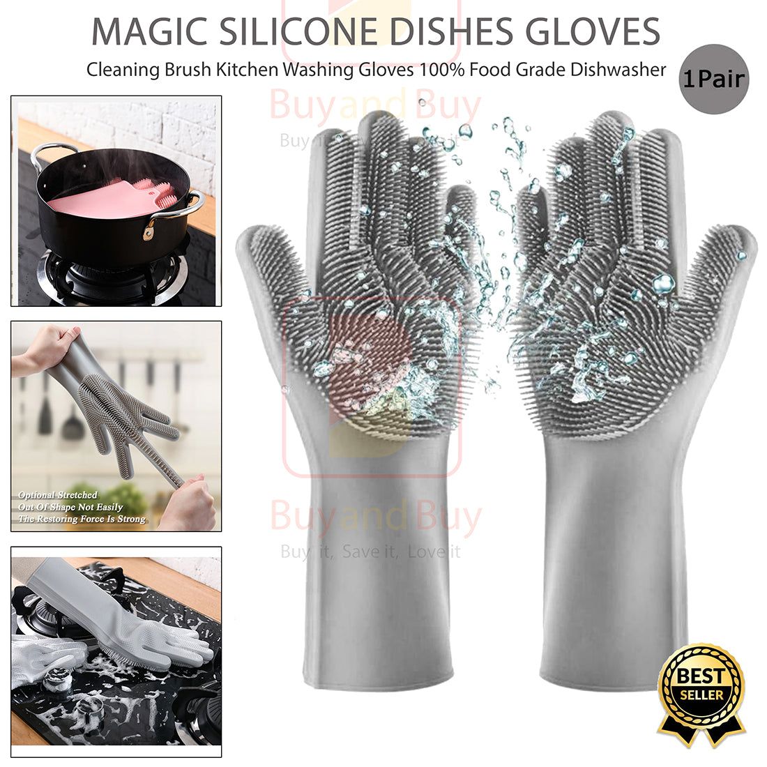 All-in-one silicone gloves with built-in scrubbers for effortless, hygienic, and heat-resistant cleaning.