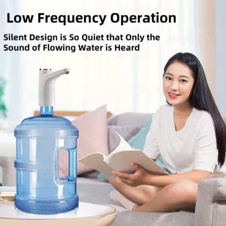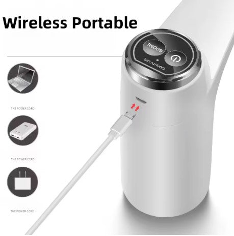 Rechargeable automatic water pump for quick, clean, and convenient dispensing from large bottles.